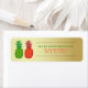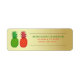Ces étiquettes d'adresse de retour de vacances modernes et uniques présentent des images d'ananas rouge et vert sur un arrière - plan de feuille d'or. VEUILLEZ NOTER : l'or est imprimé sur et n'est pas du papier doré réel.