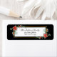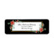 L'étiquette d'adresse de retour de Noël représente d'élégants motifs floraux d'aquarelle, dont un cadre doré festif orné de fleurs de poinsettia rouges et de verdure sur un arrière - plan noir et blanc.