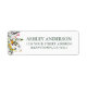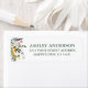 Mariage Fleur sauvage Aquarelle moderne Adresse de retour Label comprend les fleurs sauvages jaunes, roses, violettes, bleues et blanches poussiéreuses, feuilles d'eucalyptus, feuilles verts sauge et autres plantes botaniques. Texte vert Sage.