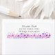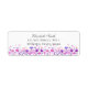 Fleurs d'aquarelle dans les tons violet, bleu et rose avec des accents pêche. Placez-vous sur un arrière - plan blanc. Fleurs dans les tons violets, bleus et roses avec des accents pêche. Placez-vous sur un arrière - plan blanc. Personnalisez avec votre nom et votre adresse en police mixte gris foncé.