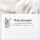 Retourner les étiquettes d'adresse avec une police de script de brosse manuscrite moderne dans une couleur gris-fusain modifiable avec des fleurs d'hydrangée violet, prune et bleu aquarelle et un papillon. Tout le texte est modifiable pour que vous puissiez modifier le style, la taille, la couleur et le placement de la police en cliquant sur CUSTOMISER PLUS LOIN.