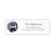 Une jolie étiquette d'adresse de retour sur le thème de l'hiver. Dans un cercle d'aquarelle gris foncé se trouve la silhouette d'un lièvre avec l'image d'une forêt derrière lui. Customisez facilement la typographie gris foncé avec votre nom et adresse.