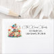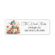 Adorable elfe de Noël assis sur un cadeau entouré de fleurs aquarelle illustration de retour des étiquettes d'adresse.