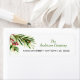 Cette étiquette d'adresse de retour de Noël présente des aiguilles de pin peintes à l'aquarelle, très populaires, accentuées de baies rouges sur un arrière - plan blanc.