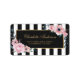 Élégantes étiquettes d'adresse florales noires et blanches avec des fleurs roses sur un fond rayé noir et blanc. Articles assortis disponibles.