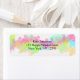 Un ensemble de étiquettes de adresse avec un design unique et joyeux et abstrait créé avec des aquarelles. Un arc-en-ciel de couleurs s'infiltre sur la toile dans des couleurs estivales comme le jaune, le vert, le turquoise, le rose et plus. Des cercles et des éclaboussures dansent à travers la page dans une ligne horizontale sur un arrière - plan de couleur crème.