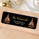 Cette étiquette élégante et chic d'adresse de retour comporte un arbre de Noël rouge et or avec un haut-parleur étoilé. Le texte combine écriture manuscrite et polices sans serif modernes pour un look élégant et sophistiqué. La neige tombante, les flocons de neige et les étincelles donnent une touche festive et magique. C'est parfait pour Noël et la période des fêtes.