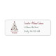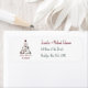 A gauche de l'adresse de retour imprimée, il y a un sapin de Noël fait de jouets vintages : poupées habillées en rouge, vert ou blanc, chevaux de jouets, nounours, singes, éléphants et clowns et aussi bougies rouges. Sur la base, il y a la typographie : le message "Joyeux Noël" écrit dans un élégant script calligraphique rouge et sous lui, le nom en lettres de main rouge. Les jouets vintages sont des poupées en papier sur le thème de Noël de Sheila Young, "Présentation de la grand-mère de Lettie, qui apporte des cadeaux de Noël à Lettie", de "La famille de papier de Lettie Lane", une série de poupées en papier publiée entre 1908 et 1915 dans "The Ladies Home Journal", maintenant dans le domaine public.