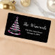 Cette élégante et chic étiquette de adresse est ornée d'un arbre de Noël en ruban rose et noir, surmonté d'une étoile. Le texte combine écriture manuscrite et polices sans serif modernes pour un look élégant et sophistiqué. La neige tombante, les flocons de neige et les étincelles donnent une touche festive et magique. C'est parfait pour Noël et la période des fêtes.