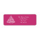 Étiquette de adresse de Noël rose avec un arbre de Noël en spirale abstraite et blanc et le nom et l'adresse personnalisées. Carte de voeux de Noël, cadeaux de Noël et cadeaux de Noël disponibles au magasin de cadeaux ScriptoGraphic.