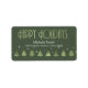 Ce design étiquette présente une belle bordure d'arbres de Noël stylisés et de flocons de neige dans un effet texturé, vert mousse sur un arrière - plan vert foncé. Le texte "Happy Holidays" et un modèle en option ont été fournis pour ajouter votre nom et votre adresse. Faites une recherche ID861 à ID864 pour voir d'autres options de couleurs et d'autres produits dans cet ensemble moderne de design de Noël.