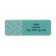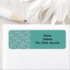 Ces étiquettes d'adresse de retour ont un design art déco de carrés divisés en deux par des lignes diagonales d'argent. Les carrés sont ensuite assemblés sur un champ de turquoise.