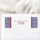 Un étiquette de adresse avec un arrière - plan en vichy bleu avec garniture rouge. Personnalisez avec votre nom et votre adresse. Recherchez les invitations baby showers correspondants et plus encore chez Jill's Paperie.