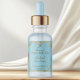 A product label featuring a baby blue damask pattern in the background. Has space for your logo and website. This label measures 2.375 inches long by 1.25 inches high (60 mm long by 32 mm in height) and is a great choice when you are looking to package essential oils, fragrance oils, face serums, hair serums, and other products in standard 1/2 ounce or 1 ounce glass dropper bottles.