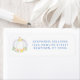 L'étiquette d'adresse de retour de Baby shower citrouille est composée d'un citrouille d'aquarelle blanc, de roses jaunes, de feuillage vert et de typographie bleue. Aquarelle originale © Michele Davies.