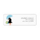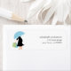 Beaux étiquettes de adresse à thème baby shower avec une jolie illustration d'une mère enceinte tenant un parapluie bleu.
