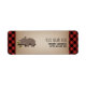 Étiquettes de adresse comportant une illustration d'un ours de bébé lounging sur une branche d'arbre au-dessus d'un arrière - plan inspiré de carte avec des accents de plaid de buffle rouge et noir. Personnalisez le nom et adresse.