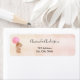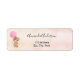 Une mignonne fille en peluche tenant un ballon rose sur un arrière - plan d'or rose rose roux rustique. Personnalisez et ajoutez votre nom et votre adresse. Parfait pour les invitations à la douche bébé et les cartes de remerciement.