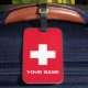 Étiquette de bagage de l'équipement Médicale rouge personnalisée. Il est parfait pour toute personne transportant du matériel médical, pour un médecin, un professionnel de la santé ou un diabétique à afficher sur leurs bagages et avoir un étiquette d'alerte médicale.