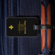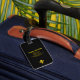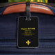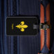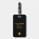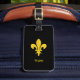 Une étiquette à bagage noir avec une Fleur de Lys couleur or et des coordonnées personnalisables : un accessoire élégant et royal pour vos voyages !