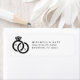 Étiquettes de retour de mariage noires et blanches simples avec monogramme de bague en diamant. Personnalisez-le avec les détails de votre événement.