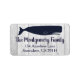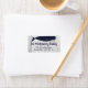 Étiquettes de adresse de silhouette de baleine bleue marine côtière avec un faux arrière - plan planches de bois blanc.