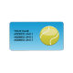 balle de tennis en dessin animé vert cool sur un arrière - plan en dégradé bleu et une zone de texte personnalisable pour votre nom et adresse.