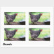 Cet autocollant présente une scène agricole pittoresque d'un poulet perché sur une vieille brouette.