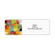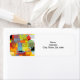 Cette étiquette d'adresse de retour a une conception Bauhaus a des bandes horizontales de couleur et des formes superposées placées sur le dessus. Coloré, audacieux, amusant !