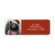 This charming return address label features a delightful black bear character. He's dressed in a festive Santa hat and a cozy red Fair Isle sweater, perfectly capturing the Christmas spirit. The label's background is a matching red, providing a warm and inviting backdrop for the crisp white text of your address, ensuring clear and elegant presentation. AI image designed by Susang6