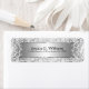 Elégant bel arrière - plan gris argent glamour avec look métallique brillant avec damas blanc et dentelle florale à chaque extrémité. Étiquette d'adresse de retour personnalisable. Police de couleur noire suggérée pour un contraste agréable.