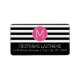 Étiquette Black and White Striped Pattern Hot Pink Monogram