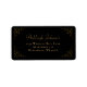 Un élégant étiquette de adresse d'inspiration vintage pour les enveloppes que vos invités utiliseront pour retourner leurs cartes RSVP. Le nom apparaît dans un script de couleur or sur un arrière - plan noir, avec l'adresse dans la police serif ci-dessous. Un délicat motif vintage de vigne dorée encadre le texte.