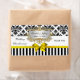 Étiquette jaune lumineux de vin de partie de ruban d'arc de damassé blanche noire de rayure