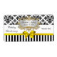 Une conception avec un motif noir et blanc de damassé a appareillé avec un motif rayé noir et blanc. Elle a embelli avec un ruban jaune lumineux d'arc de regard de satin.