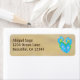 Bleu mignon tongs avec Fleurs Jaunes sur Étiquette de adresse de plage de sable. Quelques graphiques par artwork©delightful-doodles.com ~