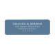Cette étiquette d'adresse de retour présente une mise en page propre et centrée avec un espacement généreux entre les lignes sur un fond bleu moyen apaisant. Le design utilise une typographie sans-serif moderne en blanc pour une lisibilité claire et une apparence professionnelle. Son style minimaliste met l'accent sur la fonctionnalité sans aucun élément décoratif, ce qui la rend idéale pour une correspondance formelle. Les espaces réservés personnalisables permettent une personnalisation facile des noms, adresses et codes postaux, assurant une polyvalence pour diverses utilisations.