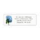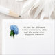 Étiquettes d'adresse de retour de fleurs d'hydrangée bleu clair. Style de police calligraphie en vert foncé imprimé sur blanc. Utilisez trois ou quatre lignes pour les noms et l'adresse.