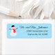 Ces étiquettes d'adresse de retour sont illustrées d'une adorable illustration d'un bonhomme de neige portant un casquette d'hiver et un foulard sur un arrière - plan bleu clair, ainsi que du texte personnalisable pour votre propre nom et adresse de retour.