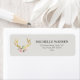 Coordonner avec le modèle de carte d'affaires Bohemian Gold Antlers with Flowers II d'ici 12 h 01. Une illustration de bois de cerf en faux or métallique est combinée à un bouquet de fleurs pour fournir une esthétique bohème sur cette étiquette d'adresse de retour personnalisée. Cette conception fait partie d'une série de fournitures de bureau de coordination pour aider à faire la marque de votre entreprise. Art et design originaux © 1201AM CREATIVE / www.1201am.com