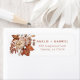 Un spray de boho fleurs de chute rustique et les étiquettes d'adresse de retour du couple feuillage.