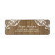 Étiquettes d'adresse de retour du mariage en bois rustique et dentelle blanche