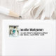 Étiquettes d'adresse avec un dessin mignon représentant un bonhomme de neige portant un haut-de-forme élégant et une écharpe. L'arrière-plan présente une rangée de pins fantaisistes couverts de neige.