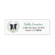 A portrait of a beautiful black and white Border Collie Dog inside a pale green leaf watercolor eucalyptus wreath is the feature on the left side of these return address labels. Your custom text in green and black is at the right. Perfect for anyone who loves a Border Collie.