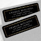 Étiquettes d'adresse de retour en couleur noir ou personnalisé avec une fine bordure en dégradé doré (image imprimée). Les polices et la couleur arrière - plan peuvent être customisées avec l'outil de conception.