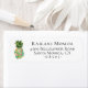 Elégant aquarelle ananas floral botanique, étiquettes d'adresse de retour blanc. Personnalisez/Customisez le texte, le style de police, la couleur et la taille.