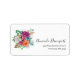 Étiquettes de adresse avec un arrangement floral contenant de jolies roses rose, orange et blanche entourées de feuilles verts.