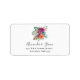 Étiquettes de adresse avec un arrangement floral contenant de jolies roses rose, orange et blanche entourées de feuilles verts.