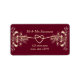 Étiquette de retour d'adresse de mariage luxueuse et élégante en or et bourgogne rouge avec un cœur de corde simple et une dentelle florale dorée.