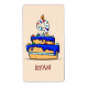 There is a number 9 candle filled with colorful candies on the top of a blue icing cake on the front of this cute gift, souvenir, giveaway or party essential. Perfect to send any special boy celebrating his 9th birthday.